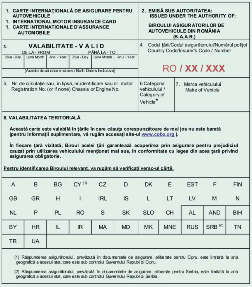 * În cazul autoturismelor TAXI, acestea vor prezenta „Agreere TAXI” valabilă